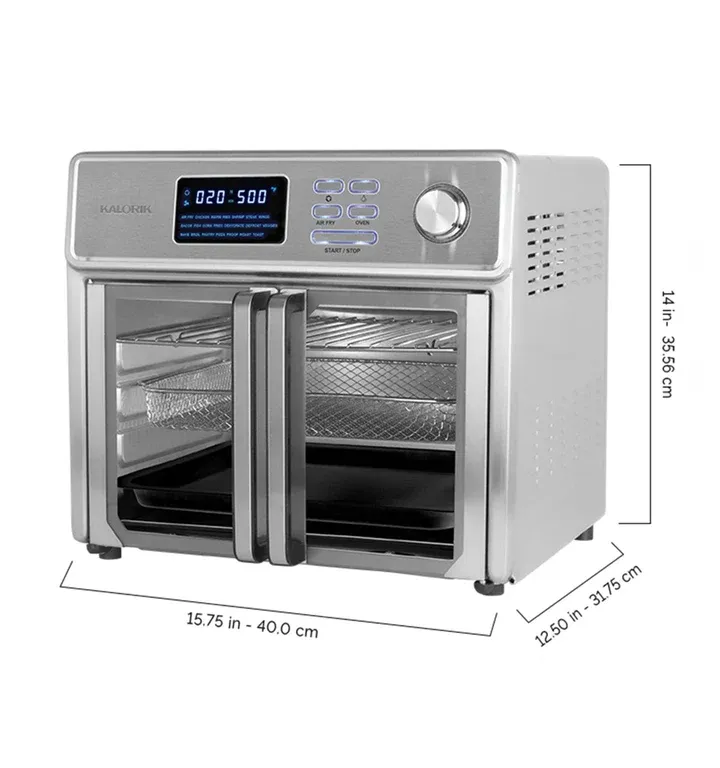 | Description | Kalorik 51781 26 Quart Air Fryer - 1700 Watts - Extra large 26-quart capacity - Power Supply: AC 120V, 60Hz - Digital LED display and 21 smart presets - Reducing fat by up to 75% - Sears up to 500°F - Single-pull glass French doors prevent drips and protect from scalding - Multi-functional air fryer oven can fry, bake, toast, roast, grill, rotisserie, braise, sear, dehydrate, and broil - Versatile and innovative appliance perfect for your kitchen - Brand New |