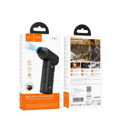 | Description | Hoco Highspeed Portable Jet Fan - 80,000 RPM ultra-speed motor for extreme airflow - Digital display for battery and speed visibility - 100 speed levels for full airflow control - Built-in LED flashlight for night use or emergencies - Compact size and 275g lightweight design - Multi-functional: cooling, cleaning, dust blowing, and more. - Rechargeable battery - built in battery for wireless convenience - Portable & Ergonomic - Safe and low-noise operation - Brand New |