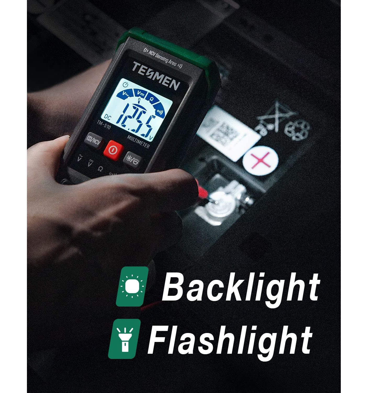- Supports data hold, automatic shutdown, low battery indicator, backlight display, and flashlight.